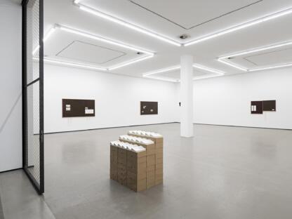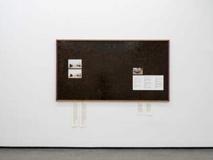 Ima-Abasi Okon works across sculpture, sound, and video to create multilayered installations. In 2025, Okon presented a solo exhibition spanning all ten galleries of the Van Abbemuseum’s old building in Eindhoven, and developed a new commission with Haus am Waldsee in Berlin, responding to the practice of Beverly Buchanan. Previous projects include a Avg Pace: S %~E ~L%~A%~ H%~s%~peri£meno£pau£sal~P%~S%~A %~L ~M%~’S km —(t!h!a!tyes‑t!!hhat incumbent experiential plane to reorganise a c,a,p,a,c,i,t,y of never having enough— Not as a whole but as aprecise h!e!a!p of digni-fide agility) & S.t.a.n.d.a.r.d. P.r.a.c.t.i.c.e, Kunstverein Hamburg, Hamburg.I K,A,R,A,O,K,E, — O.O.P.S: Insubordinate Rhythms, i. Grace, ii. Labour, iii. Psalm, iv, v, Against the conditions of the Day, her second self published project was released at the end of 2023.