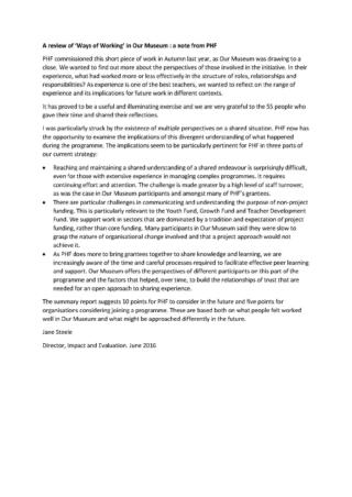 21 Jun 2016PublicationA review of ‘Ways of Working’ in Our Museum : a note from PHF